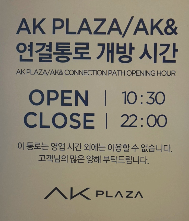 입구에서 노보텔 주차장 입구와 AK 플라자 입구와 나누어져 있습니다.